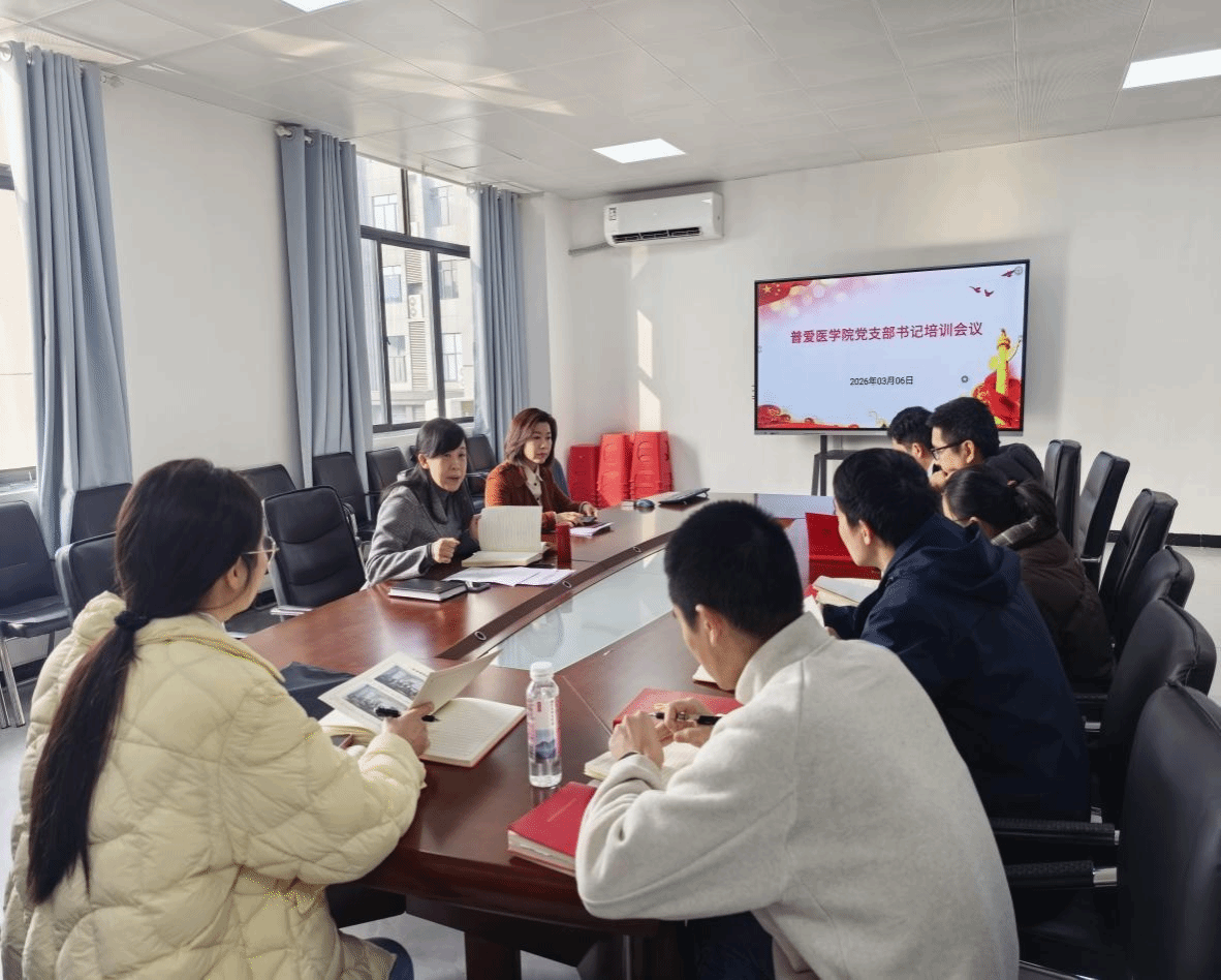 为深入学习贯彻习近平新时代中国特色社会主义思想,全面贯彻落实党的二十大及二十届历次全会精神,进一步提升基层党支部书记的政治素养和履职能力,推动党建工作与业务工作深度融合,2026年3月6日上午,普爱医学院(医学部)党总支在基础医学楼201会议室组织召开了党支部书记专题培训会议。会议由党总支书记邹胜琪主持,党总支副书记及各党支部书记参加会议。
