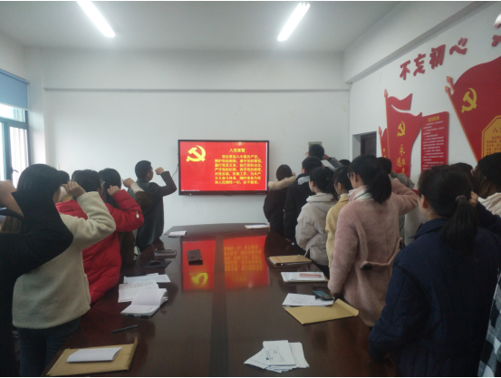 最后,肖丽群老师勉励各位党员同志,希望大家能紧跟党组织的步伐,对党忠诚,树立党员的先锋模范形象,不忘初心,牢记使命,做新时代的合格共产党员。会议在庄严的宣誓声中结束。