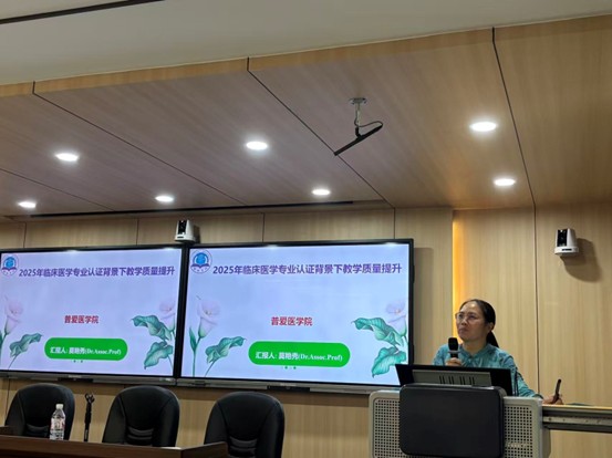 2025年9月11日下午,普爱医学院在明德楼北905室成功举办“临床医学专业认证背景下教学质量提升”专题分享会。本次活动旨在深入贯彻落实国家高等医学教育政策要求,扎实推进临床医学专业认证迎评工作,进一步推动医学教育内涵建设与人才培养质量提升。普爱医学院、附属第一医院及第二医院60余名骨干教师参会,会议由普爱医学院副院长王乐主持。