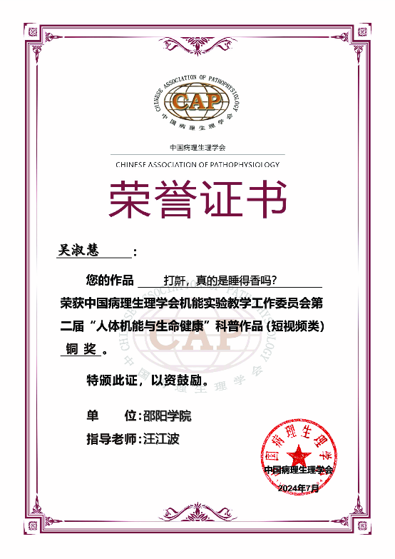 近日,中国病理生理学会公布了由机能实验教学工作委员会主办的第二届全国“人体机能与生命健康”科普作品大赛赛获奖名单。