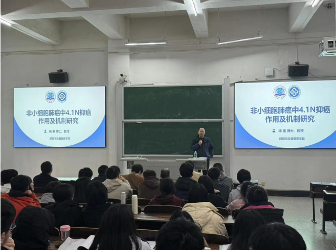 为进一步加强我校学术交流工作,2024年3月21日普爱医学院(医学部)博士,硕士生导师杨秦教授在七里坪校区梅子井教学楼南102进行题为“非小细胞肺癌中4.1N抑癌作用及机制研究”学术讲座。讲座由普爱医学院(医学部)副院长李艳伟主持,普爱医学院全体教职工、学生等百余人参加讲座。