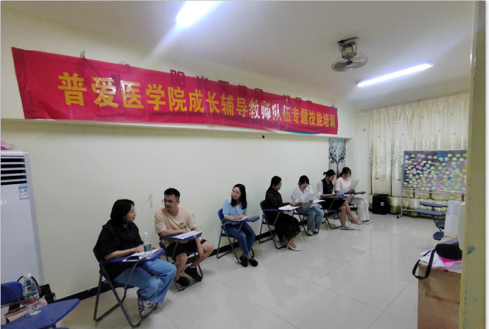 为进一步提升辅导员队伍的心理育人能力,增强成长辅导工作的科学性、实效性,扎实推进学生心理健康教育工作,6月13日下午,普爱医学院在阳光天使特色成长辅导室举办了一场别开生面的团体心理辅导技能培训,本次培训由大学生心理健康教育中心专职教师钟琼瑶老师主持,学院全体辅导员参加培训。