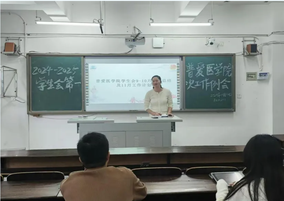 为加强学生会内部建设,总结工作经验,确保后续各项工作的顺利开展,普爱医学院学生会于10月30日晚七点在教北101召开本学期第一次学生会工作例会。出席本次会议的有学生会指导老师吴飘老师、学生会主席团成员以及学生会各部门部长。