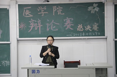经主持人介绍完此次辩论赛基本规则及流程后,正反双方就“医学发展能否超越伦理界限展开激烈的辩论,现场火药味十足,正反双方各持己见,紧张而有条理的辩驳着对方,都试图从对方的言辞中找到破绽从而辩论开来。经过近一个小时的精彩辩论及评委们的打分,代表正方的医学院17级临床本科7、8班组成说啥都对队赢得此次辩论赛。郭妍书记首先表达了对获胜队伍的表扬,并勉励另一方队伍要奋起直追,这次比赛精彩有序,充分展现了当代医学院生该有的睿智,对学习五四精神,传承五四精神,加强大学生对医学专业的深度思考,增强大学生的时代使命感和历史责任感有重大意义。