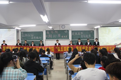 4月29日晚,邵阳学院医学院“弘扬五四百年精神,展现医学青年风姿”大学生辩论赛于七里坪校区明德楼南栋一楼阶梯教室T2圆满结束。医学院党总支副书记郭妍带领全体辅导员出席此次比赛。 比赛还邀请了校学习部、体育学院学习部以及医学检验学院学习部出席作为此次比赛特别嘉宾。
