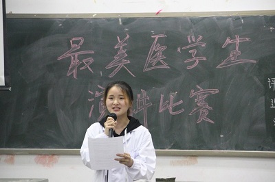 为全面推进学习习近平新时代中国特色社会主义思想,加强医学院学生思想政治教育,传承“厚德尚医”的医学精神,邵阳学院医学院学生联合会于4月8日晚上7点整在二号实验楼107教室和409教室举行最美医学生演讲比赛。学生会主席团以及学生会各部门部长担任本次比赛的评委。比赛在主持人的精彩发言中以及评委们和选手们的掌声中拉开了帷幕。