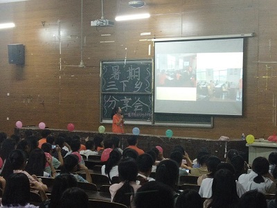 会议伊始,由主持人介绍了此次分享会的目的。通过播放三下乡PPT的方式为大家简单介绍三下乡的整个过程,使在场的同学对“三下乡”这个概念有所了解。紧接着,由此次三下乡的志愿者们讲述三下乡心得体会,并与现场的同学进行交流,让在场的同学对三下乡有更深刻的认识,真正感悟到三下乡的魅力。