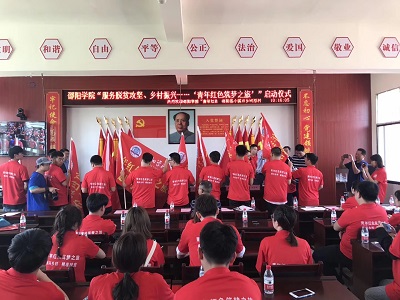 邵阳学院服务脱贫攻坚、乡村振兴—‘青年红色筑梦之旅’” 活动启动仪式于201962日上午930分在邵阳县河沿村成功举行。