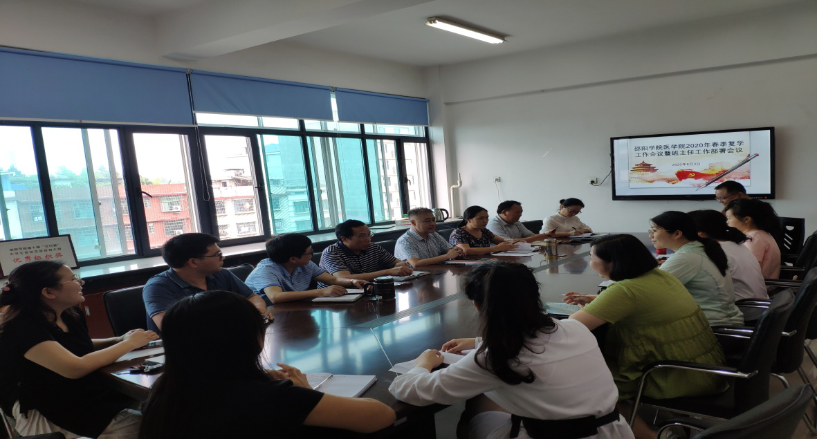 6月3日上午10点,医学院在二办公楼619召开了2020年春季复学工作暨班主任工作部署会议。医学院党总支副书记郭妍主持会议,医学院班子成员、全体辅导员、班主任参加了此次会议。