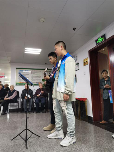 最后,志愿者们给老人分发了小礼品并进行了精彩的才艺表演,深受老人们的喜爱,老人也与志愿者们进行了互动。