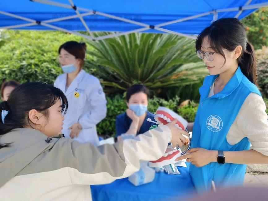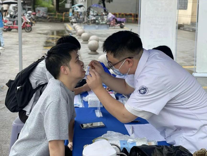 本次活动前期通过线上线下多渠道宣传,招募30余名志愿者并开展专业培训,确保服务专业性。在5月16日的义诊环节中,现场氛围热烈。志愿者们向路过同学发放宣传资料,口腔医生团队为同学们进行免费口腔检查,认真记录检查结果,与学生充分沟通病情,针对智齿生长状态、牙龈健康等问题提供一对一治疗建议,并耐心解答同学们提出的各种口腔健康问题。