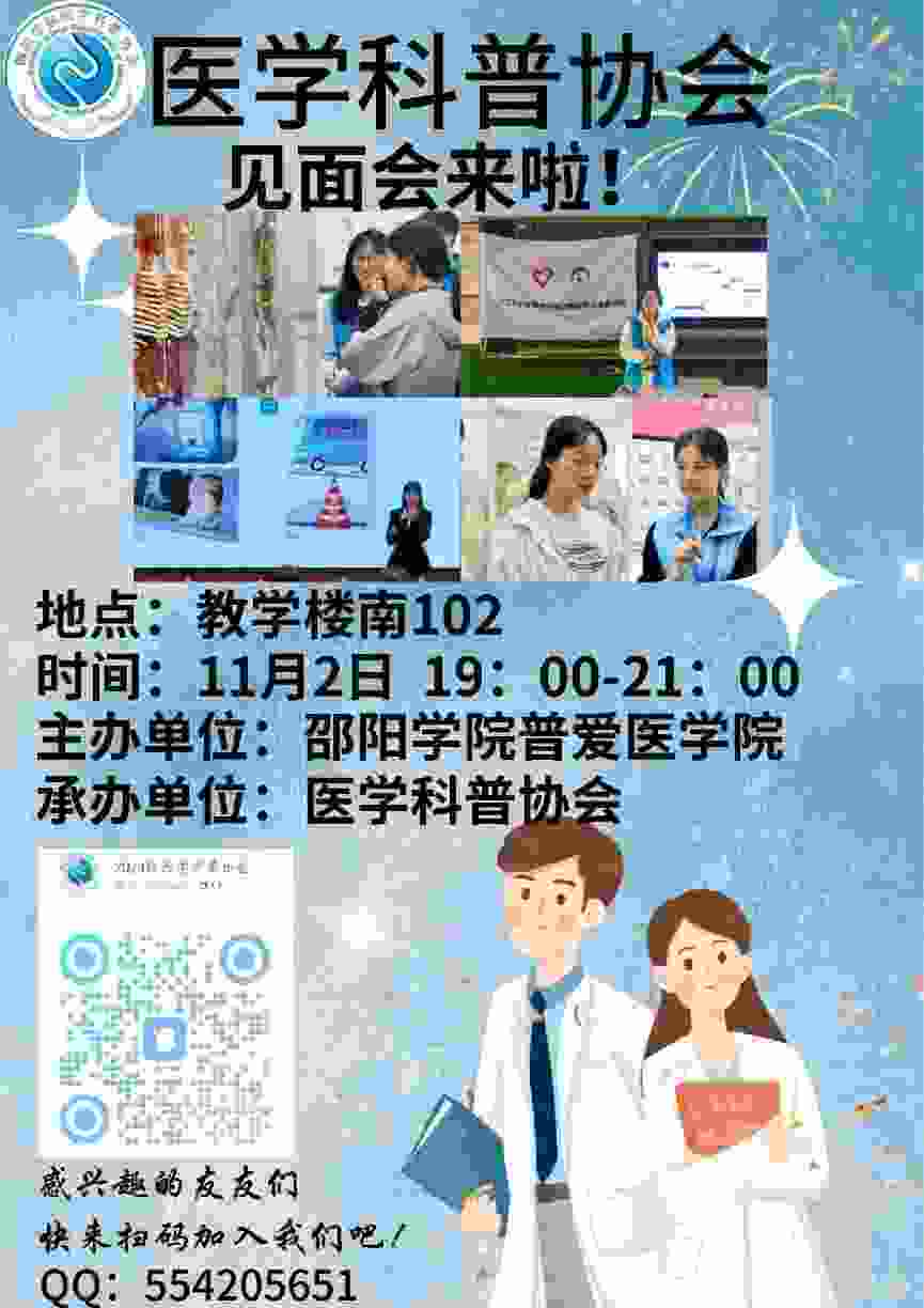 如果您对医学怀揣着浓厚的兴趣渴望提高专业技能,让自己的语言表达如灵动的音符般打动人心,同时希望为大学生活增添一抹绚丽多彩的色彩,那就别再犹豫啦!赶快报名加入我们的协会吧,这里将是你梦想起航的地方!