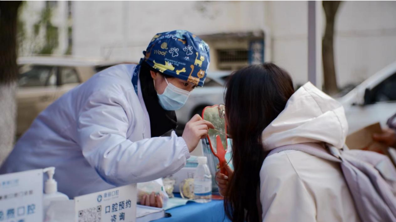 活动中,志愿者们用通俗易懂的语言开展口腔健康知识科普,指导如何正确的爱牙护牙,并分发口腔健康宣传手册,引导同学们前往摆点处,康丽口腔的医生们为同学们进行免费口腔检查,仔细询问同学们的口腔健康情况,耐心讲解牙齿养护的注意事项,解疑答惑,并对口腔牙齿问题提出治疗建议。