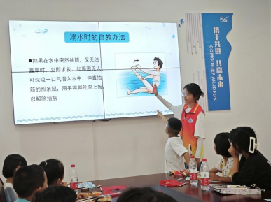 图为宣讲人徐艳萍在给小朋友科普溺水知识。