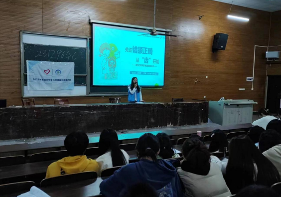 为深入学习宣传贯彻习近平新时代中国特色社会主义思想和党的二十大精神,落实《“健康中国2030”规划纲要》和《健康口腔行动方案(2019-2025年)》,引导青年学生掌握口腔健康知识,形成良好的口腔健康行为,邵阳学院医学科普协会积极响应号召,组建了口腔健康宣讲团,携手康丽口腔医院于2023年11月10日晚在邵阳学院梅子井校区济世楼107举办了“口腔健康,全身健康”口腔健康宣讲活动,在本次活动中,有约300名邵阳学院学生参与。
