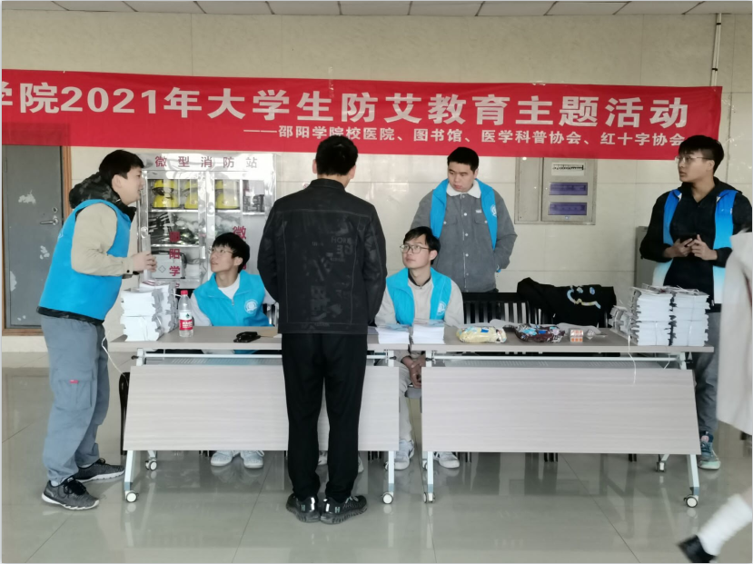 2021年12月1日,医学科普协会联合我校校医院、图书馆、红十字协会以及市疾控中心在图书馆一楼大厅举办我校大学生防艾主题教育活动。医学部黄俊副书记、肖楚丽副主任、基础医学院钟方为书记、贺志明院长、李艳伟副院长、图书馆谭亮副馆长、校医院马红梅等莅临指导。