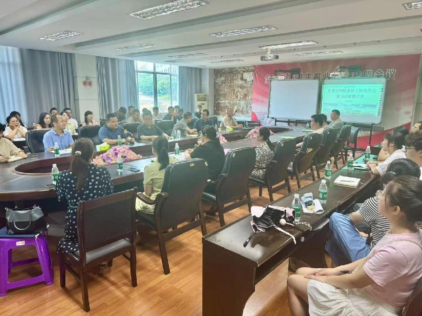 9月5日,学院召开了各教研室主任,实训中心主任,支部书记和全体坐班人员培训会,会上,班子成员就浙大培训学习和分管工作进行了交流培训,要求各教研室、实训中心进一步加强学科团队建设,不断提升教师教育教学能力;要求各坐班人员做好师生服务,管理服务,后勤保障。