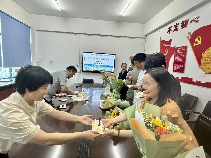 会后,学院领导为每位代表献上花束和蛋糕以表庆祝。