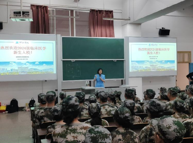 活动伊始,贺朝霞首先代表学院向各位临床新生们表示热烈欢迎并送上诚挚的中秋祝福,希望同学们对接下来的大学生活有明确的方向,以“长风破浪会有时”的志气迎接前行路上的困难。