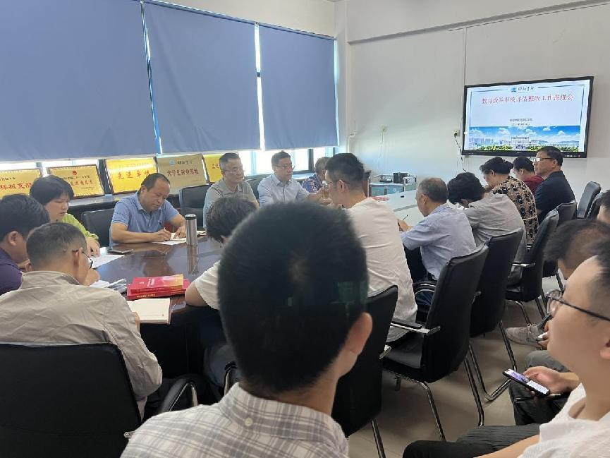 9月23日上午,普爱医学院教育教学审核评估整改工作推进会在七里坪校区二办公楼619会议室召开。学院全体领导、教研室主任、实训中心主任、支部书记及全体行政坐班人员参会,会议由党总支书记黄俊主持。