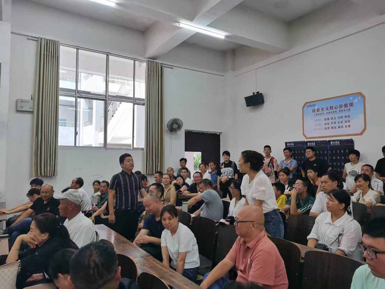 最后,辅导员姚利林与艾陈老师依次下台,与学生家长亲切沟通,就家长心中问题与所提看法,耐心的进行解释与补充,与家长们互动,营造了浓郁的氛围。