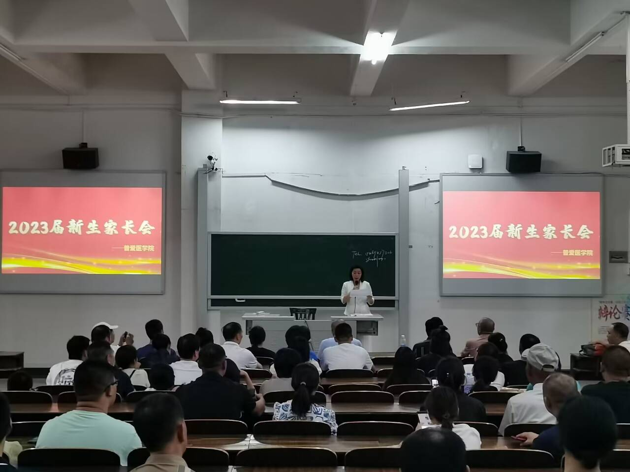 随后辅导员姚利林热情的介绍了普爱医学院的发展历程,并激动的讲述了历年来在学院师生共同努力下,在学子就业分配、考研考公等学业方面所取得的出色成绩及学院对2023届学子未来发展目标的计划,让各位家长对子女未来发展充满信心。