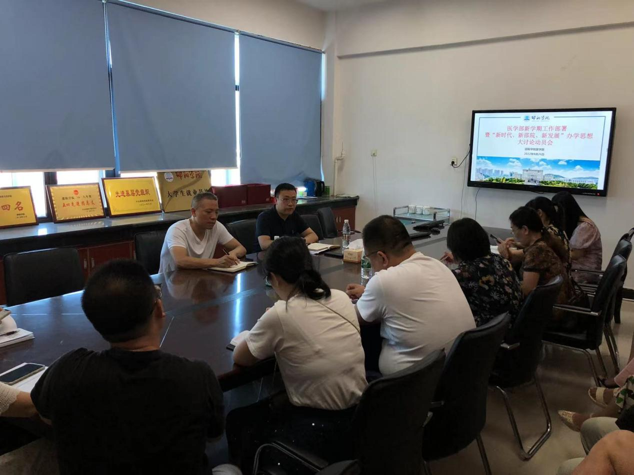 会议传达了学校党委副书记、校长张平同志在“新时代新邵院新发展”办学思想大讨论动员大会上的讲话精神。会议强调,医学部全体教职工要要端正思想、准确定位、凝心聚力、苦练内功,为奋力推进新时代“四力”新邵院高质量发展,打造合力邵院、活力邵院、实力邵院、魅力邵院贡献自己的力量。
