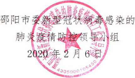 各县市区委(邵阳经开区党工委)新型冠状病毒感染的肺炎 疫情防控工作领导小组,市直和部省驻邵单位: