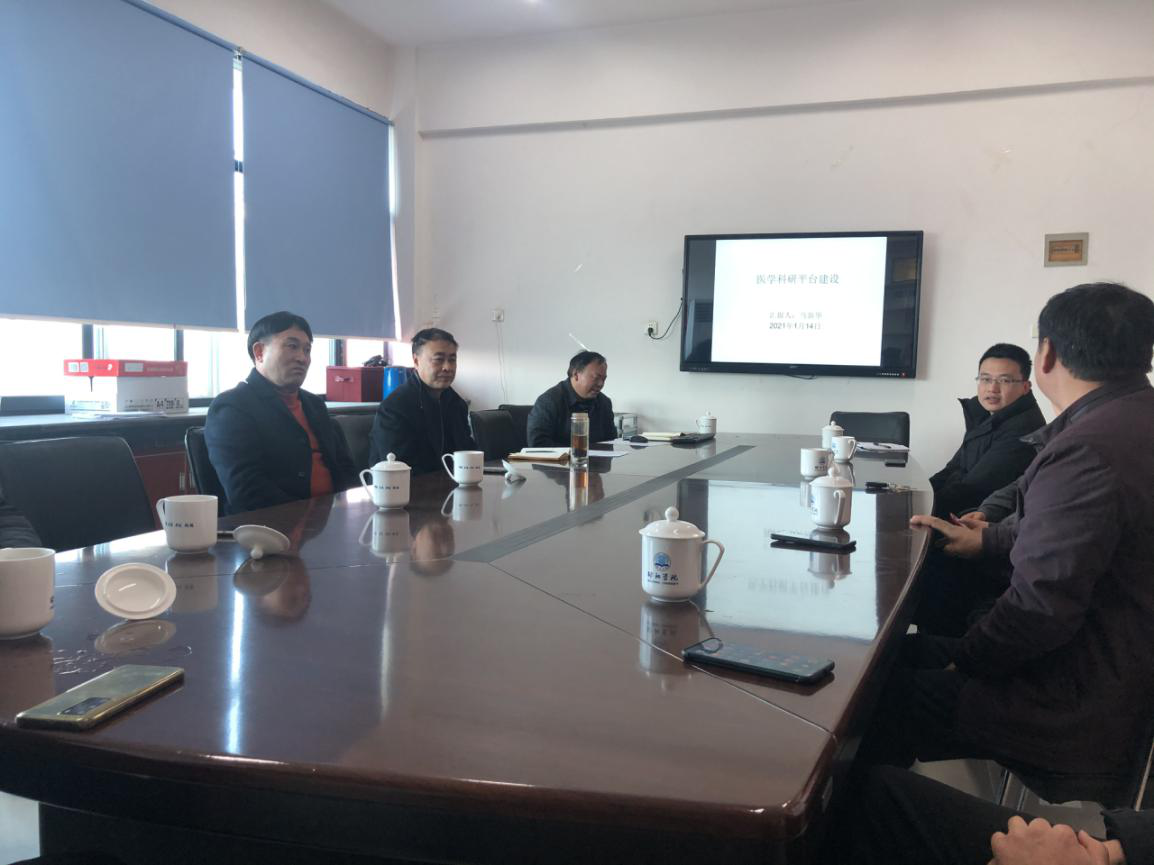副院长马新华,针对临床医学专业评估、专业认证需要,硕士点申报等方面进行了汇报,对医学科研工作如何建设提出了建议,并对建设为一个能完成细胞研究、分子研究、基因检测、离体器官功能监测,设备相对完善、性价比较高的实验室提了方案。