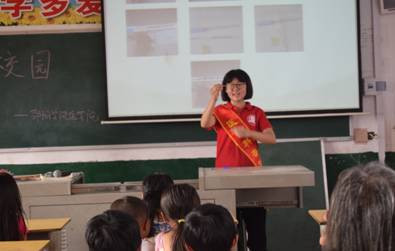 视察过程中,我院志愿者正在为观华村的孩子开展科普小课堂。课堂中两位老师听了志愿者们为孩子们准备的儿童牙齿保护、正确的洗手方式等内容的一堂科普课。